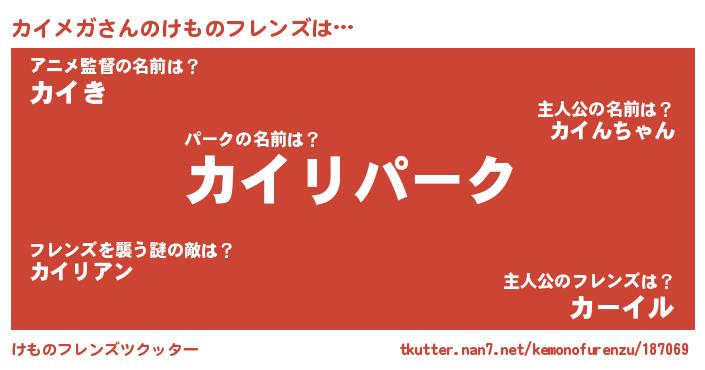 | 意味不明あだ名 | 『自称カイメガ』『たけのこ科カイメガ属』 |