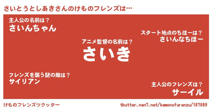 | ポケモン風あだ名 | 『サイゴンZ』『ヒサイトウトシアキ』 |