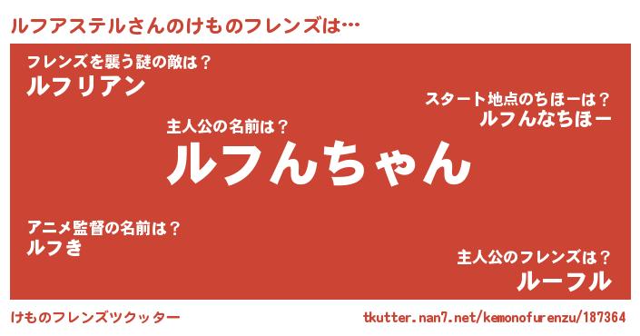 | ヘコむあだ名 | 『ルフっふぃ~』『ルフアステル(遠い目)』 |