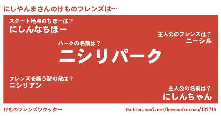 | 意味不明あだ名 | 『自称にしやんま』『ペロリンにしやんま』 |