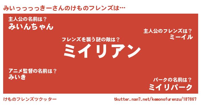 | ヒーロー風カッコイイあだ名 | 『慈愛の使者みいっっっっきー』 |