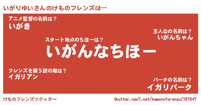 | 肩書あだ名 | 『いがりゆい少尉』『いがりゆい総理大臣』 |