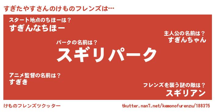 | 意味不明あだ名 | 『自称すぎたやす』『ニラ科すぎたやす属』 |