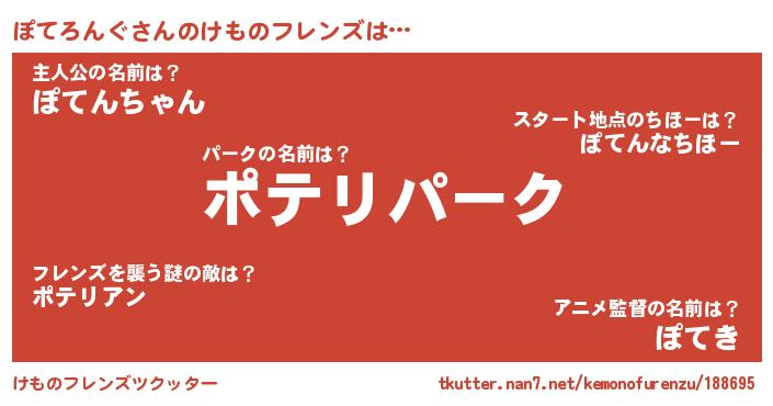 | 意味不明あだ名 | 『自称ぽてろんぐ』『ペロリンぽてろんぐ』 |