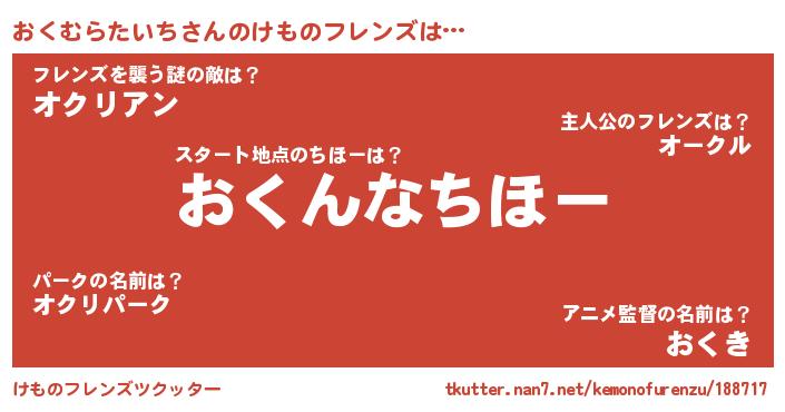 | 男性向けラノベタイトル風あだ名 | 『おくむらたいち~年齢イコール彼女いない歴の魔法使い~』 |