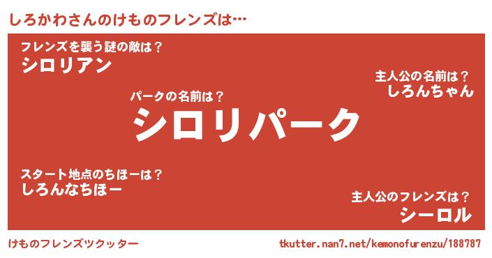 | 意味不明あだ名 | 『自称しろかわ』『永久保存しろかわ』 |