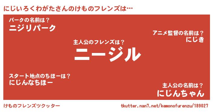 | ポケモン風あだ名 | 『ニジゴンZ』『ニージイ』『ゼニニジ』 |