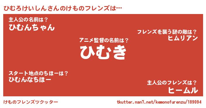 | ポケモン風あだ名 | 『ヒヒムロケイシン』『ヒムチュウ』 |