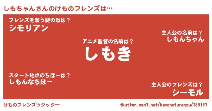 | ヒーロー風カッコイイあだ名 | 『炎刃騎士シモ』『愛の使者しもちゃん』 |