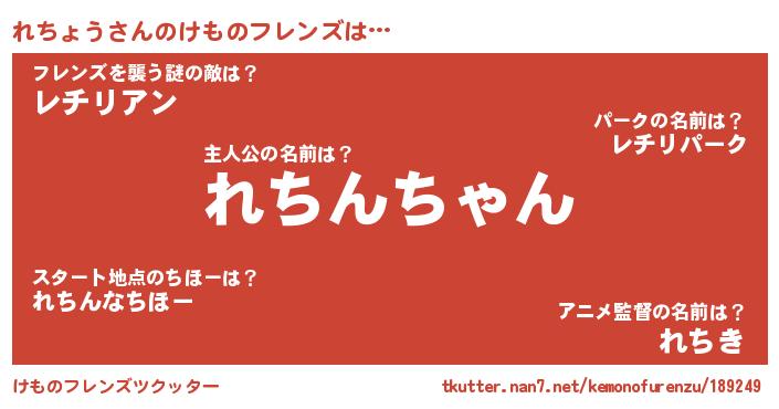 | 2回繰り返すあだ名 | 『れちれち』『しゃきしゃき』 |