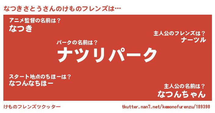 | 意味不明あだ名 | 『自称なつきさとう』 |
