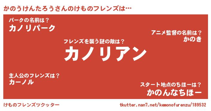 | 男性向けラノベタイトル風あだ名 | 『この素晴らしい世界にかのうけんたろうを!』 |