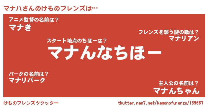| ヒーロー風カッコイイあだ名 | 『ウルトラマナハマン』『仮面マナダー』 |