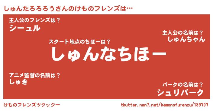 | ヒーロー風カッコイイあだ名 | 『仮面シュダー』『ネオシュンタロロロウ』 |