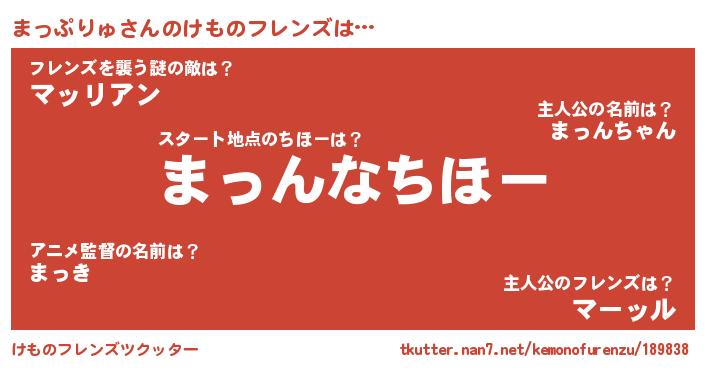 | 男性向けラノベタイトル風あだ名 | 『まっぷりゅに滅ぼされるだけの簡単なお仕事です』 |