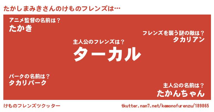 | 意味不明あだ名 | 『永久保存たかしまみき』 |