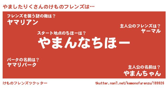 | 2回繰り返すあだ名 | 『ややまま』『べろべろ』『やまやま』 |
