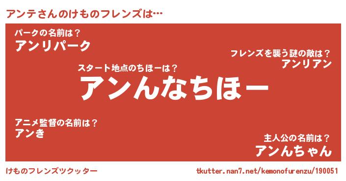 | 意味不明あだ名 | 『たけのこ科アンテ属』『自称アンテ』 |