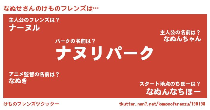 | 意味不明あだ名 | 『自称なぬせ』『つくし科なぬせ属』 |
