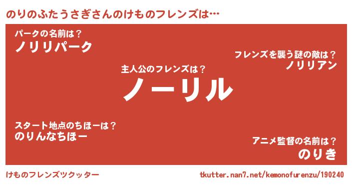 | 伝説のあだ名 | 『古より伝わる勇者のりのふたうさぎ』 |