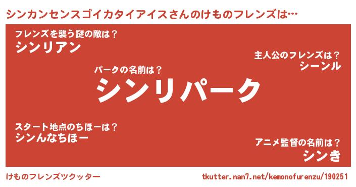 | ことわざ | 三つ子の魂100まで『シンカンセンスゴイカタイアイスの魂100まで』 |