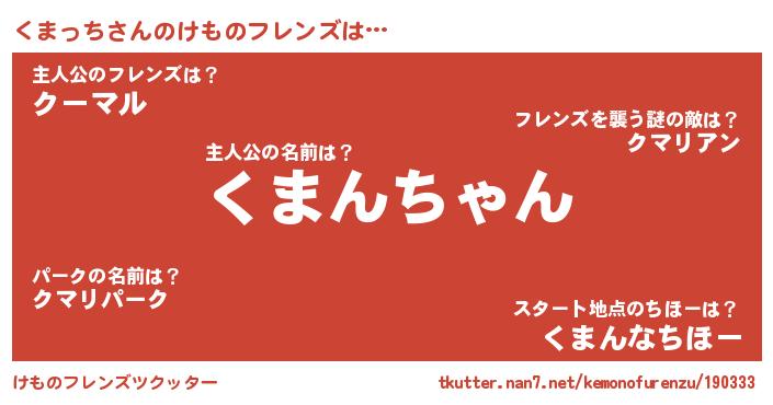 | 2回繰り返すあだ名 | 『わーわー』『くまくま』『ぎらぎら』 |