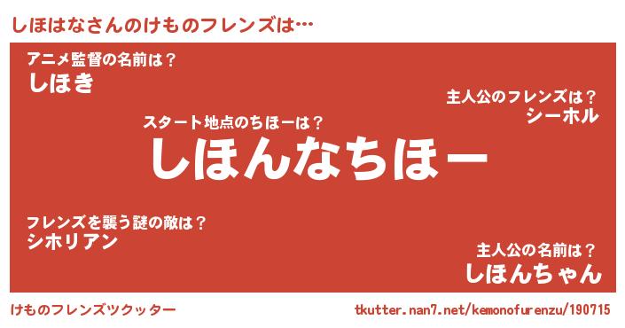 | 2回繰り返すあだ名 | 『しゃんしゃん』『ししほほ』 |