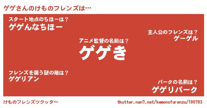| 意味不明あだ名 | 『とにかく怪しいゲゲ』『自称ゲゲ』 |