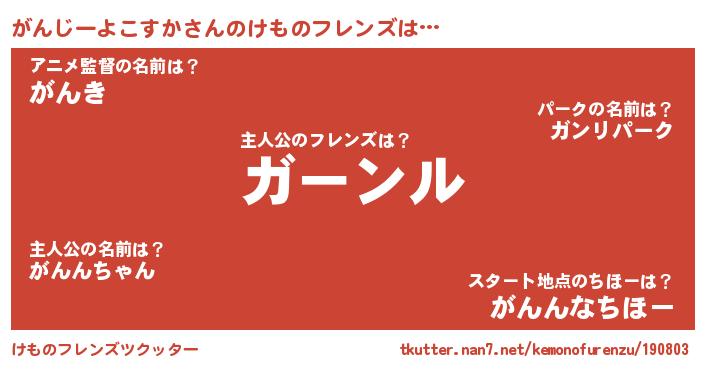 | ピコ太郎風あだ名 | 『ピコガ郎』『ガン十郎』『ピガ次郎』 |