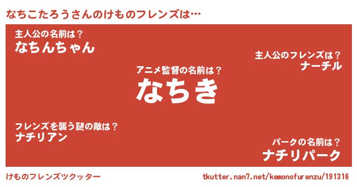 | ポケモン風あだ名 | 『ナチキング』『ヒナチコタロウ』 |