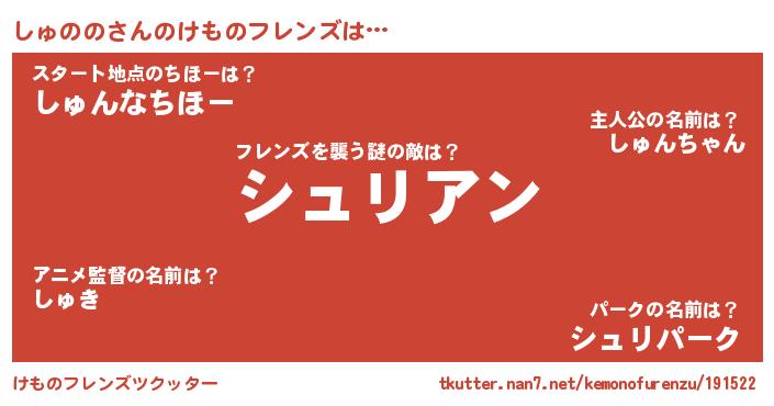 | 意味不明あだ名 | 『しいたけ科しゅのの属』『自称しゅのの』 |