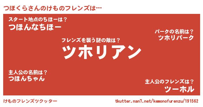 | 男性向けラノベタイトル風あだ名 | 『つほくらに滅ぼされるだけの簡単なお仕事です』 |