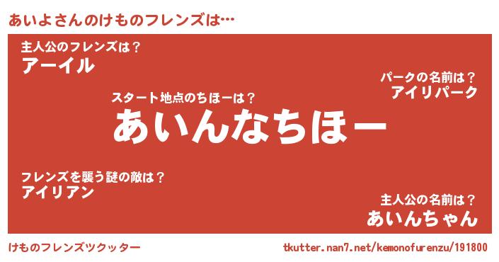 | 2回繰り返すあだ名 | 『ああいい』『げらげら』『あいあい』 |