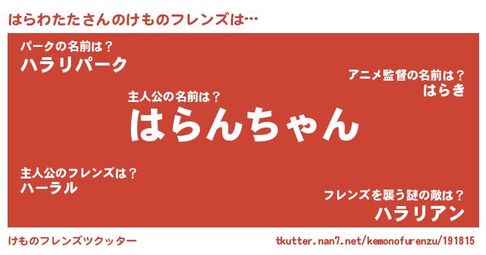 | 意味不明あだ名 | 『ペロリンはらわたた』『自称はらわたた』 |
