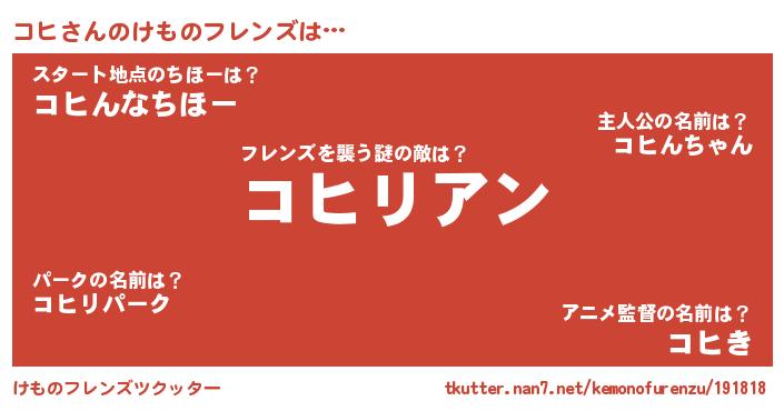 | 料理風あだ名 | 『コヒのトマト煮』『コヒの豆乳スープ』 |