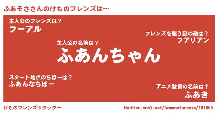 | ポケモン風あだ名 | 『フアチュウ』『ゼニフア』 |
