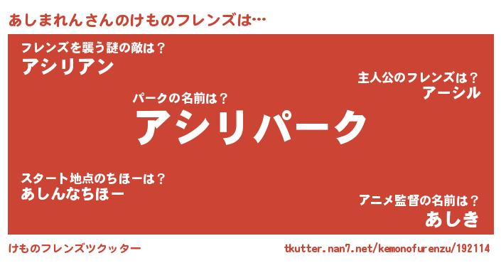 | 意味不明あだ名 | 『自称あしまれん』『永久保存あしまれん』 |