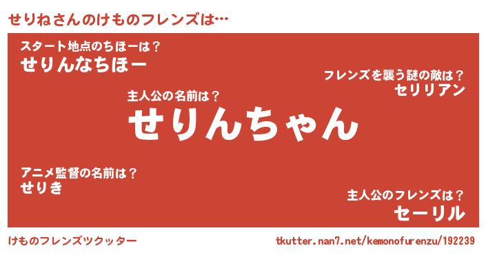 | 男性向けラノベタイトル風あだ名 | 『セリネスレイヤー』 |