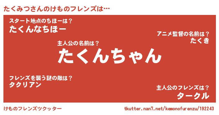 | ファンタジー風あだ名 | 『タクフェル』『エターナルタクミツー』 |