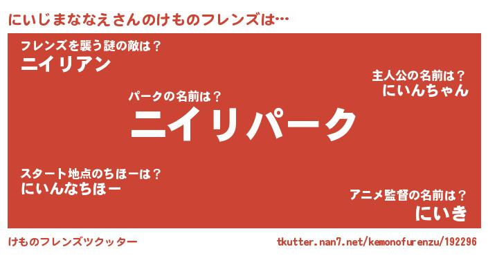 | 意味不明あだ名 | 『自称にいじまななえ』 |
