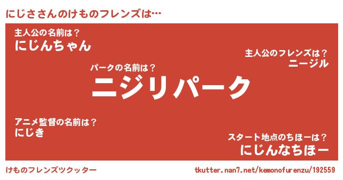 | ファンタジー風あだ名 | 『ゼニジトゥ』『ニジフェル』 |