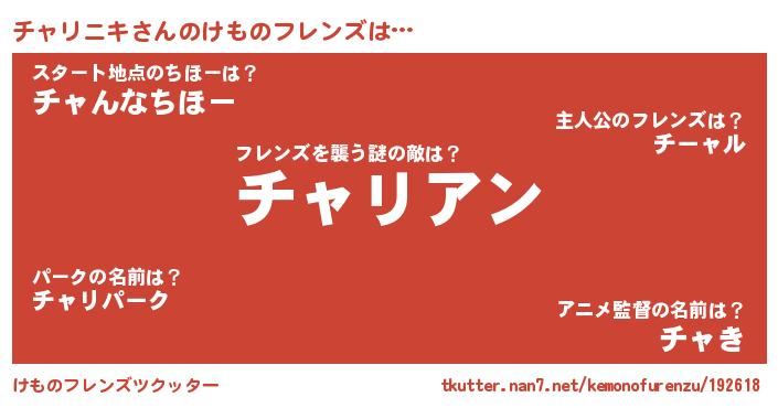 | ヒーロー風カッコイイあだ名 | 『天空の使者チャリニキ』『黄金騎士チャ』 |