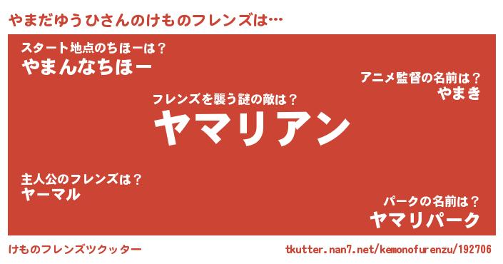 | 意味不明あだ名 | 『住所不定無職やまだゆうひ(68歳)』 |