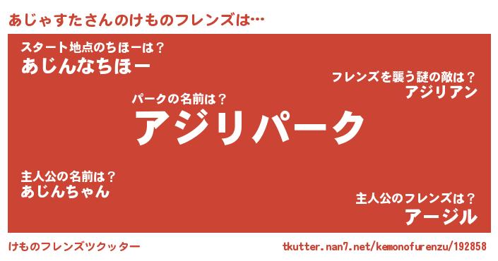 | 意味不明あだ名 | 『自称あじゃすた』『永久保存あじゃすた』 |