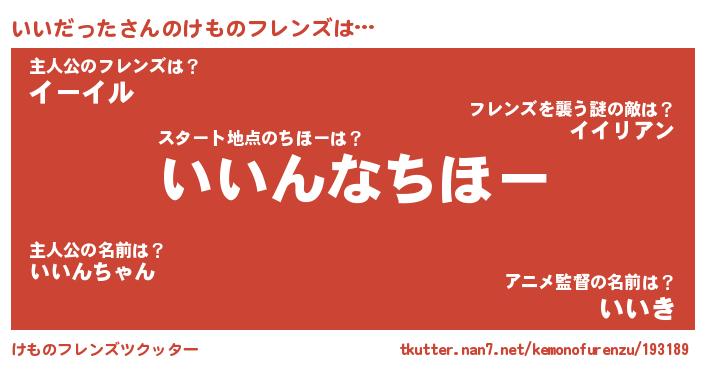 | 意味不明あだ名 | 『いいだったフォーエバー』 |
