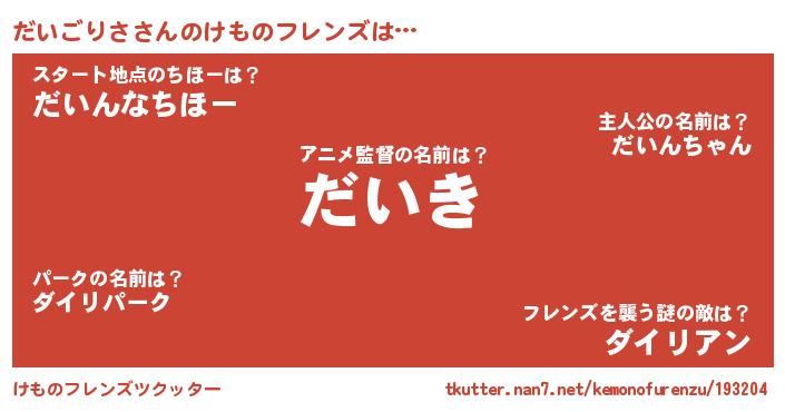 | ヒーロー風カッコイイあだ名 | 『魔戒騎士ダイ』『友情の使者だいごりさ』 |