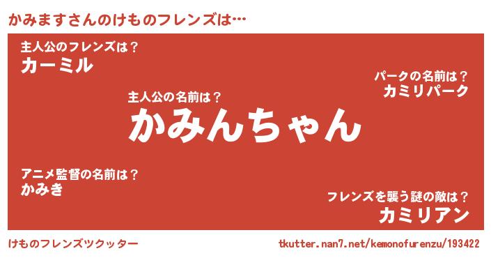 | 男性向けラノベタイトル風あだ名 | 『かみますの憂鬱』『魔弾の王とかみます』 |