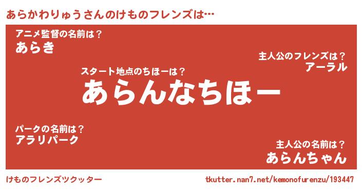 | ポケモン風あだ名 | 『アーライ』『アラカダネ』 |