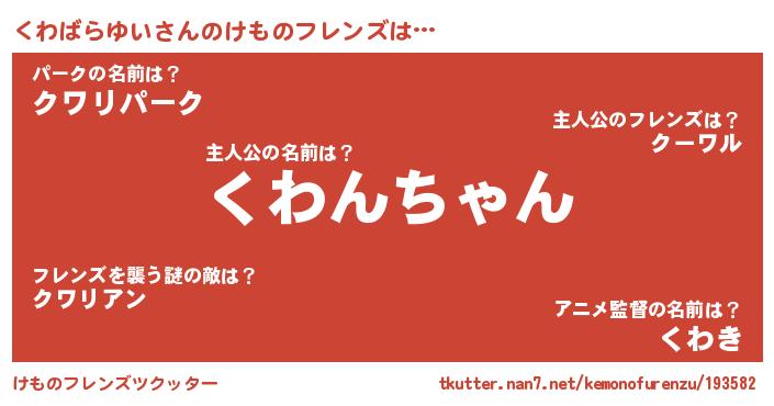| ヒーロー風カッコイイあだ名 | 『スーパークワバラユイ』『魔戒騎士クワ』 |