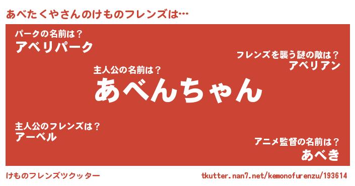 | 意味不明あだ名 | 『ペロリンあべたくや』『自称あべたくや』 |